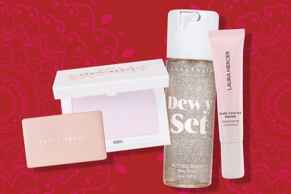 I always start with a primer, and I opt for lightweight moisturisers to go from day to night with a trusty setting spray. Mini-sized products are essential for post feasting top-ups, so your makeup stays dewy all through Diwali.