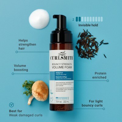 Apply to wet hair after your shower. Flip your hair upside down. Pump some foam into your hands and rake through the hair, coating it evenly. Scrunch some more product in, using an upward motion and making sure to cover the root area as well. If you want more hold and definition, follow by smoothing your favorite Curlsmith styler on top, staying away from the root area.