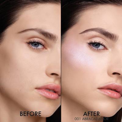 Apply the highlighter directly onto bare skin or after foundation, on areas of the face you wish to brighten, such as the bridge of the nose or the cheekbones. Then blend with your finger.
