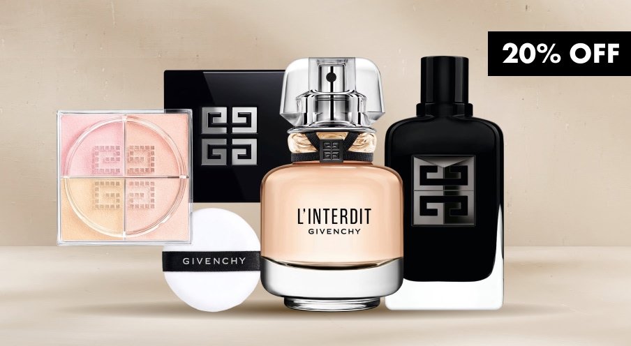 *One free gift per order. Valid until the 4th November or whilst stock lasts. Your free gift will automatically add to the shopping bag page. Total at order summary must be £80 or more worth of Givenchy products, after any Promotion Code, Brands You Love discount and before delivery charges are applied. Cannot be used in conjunction with any other Promotion and this offer is not applicable to previously made or pending purchases. Excludes Gift Voucher, Sephora Favourites Advent Calendar and Fragrance Gift Box purchases. Cannot be used in conjunction with any other Promotion and this offer is not applicable to previously made or pending purchases. This offer is available online at Sephora.co.uk to UK Mainland customers only.