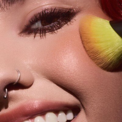 For a blurry, diffused and airbrushed finish, use Half Magic's Baby Paw Blush Brush to tap on Cheek Fluff lightly across the contours of your cheeks. Build to achieve desired color intensity.