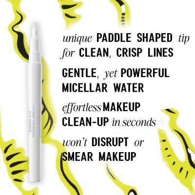 Swipe Flik Eraser along the edges of any area you want to clean up for a shaper look –– like eyeliner, eye paint, eyeshadow, or lip liner. Use the thin edge of the paddle tip for ultra crisp lines and the flat edge of the tip to clean up larger areas or graphic looks.