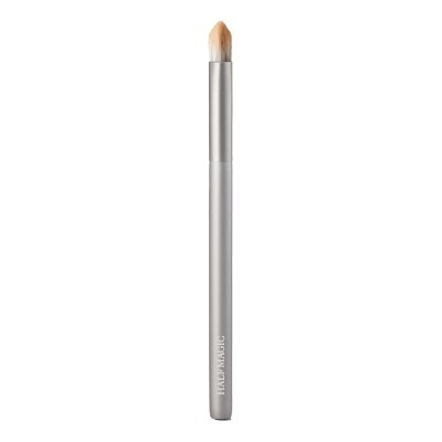 Use tapered tip of the brush to softly blend out color in the crease of the eye or create a smokey shadow wing. Use flat edge of pyramidal brush head to \stamp\ a shadow wing on the outer corner of the eye.