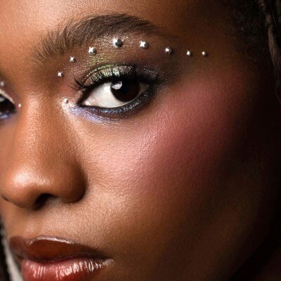 Self-adhesive face gems to accompany your every mood and to adorn every version of you. These multifaceted iridescents, neon stones, and metal studs all use a hypoallergenic and medical-grade adhesive to stay put all day and night. Skip the eyelash glue, and adorn yourself with Donni's famous \\tiny rhinies\\.