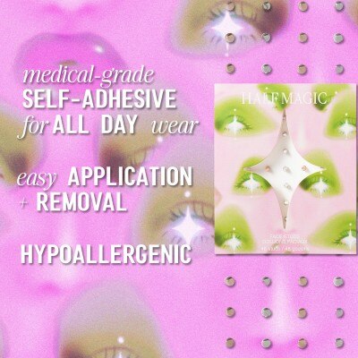 Use Half Magic's specially designed Adornment Tweezers (sold separately) to gently slide and remove each stud from its sheet. For precise and safe application, firmly grip the base of each stud as you position and apply it on your face. For maximum staying power, Face Studs should be applied to clean and dry skin.