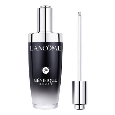 ULTIMATE REPAIR, REVERSES VISIBLE SKIN DAMAGES*. Introducing our REVOLUTION in repair science; New Génifique Ultimate Serum. The new serum is powered with Beta Glucan-CM technology, known to accelerate skin repair. Combined with Hyaluronic Acid, Licorice Extract and our iconic pre-& probiotic fractions, this formula offers the ultimate repair solution, targeting the appearance of redness, fine lines and smoother skin. What makes the difference? At Lancôme, we believe youth is in repair. Starting from age 25, your skin's capacity to repair itself decreases every year, and skin that cannot repair is skin that ages faster. Born from 27 years of research in repair science, Génifique Ultimate serum offers a dual repair action enriched with our new key ingredient Beta Glucan-CM.: Helps repair the skin barrier Helps repair early signs of ageing Each dropper contains 90 trillion Beta Glucan-CM. ULTIMATE RESULTS 93% say skin feels smoother** 82% say skin looks more glowing & luminous** 86% say skin feels hydrated** ULTIMATE TECHNOLOGY - 27 years of research - Patented Formula - 90 trillion Beta Glucans in each dropper ULTIMATE COMPATIBILITY - Suitable for all skin types, including sensitive skin - Lightweight, fresh and fast absorbing texture ULTIMATE BY DESIGN - High precision dropper for the perfect dose - Refillable 50ml format *Appearance of fine lines and wrinkles, smoothness & skin quality ** Self assessment, 81 women, 4 weeks