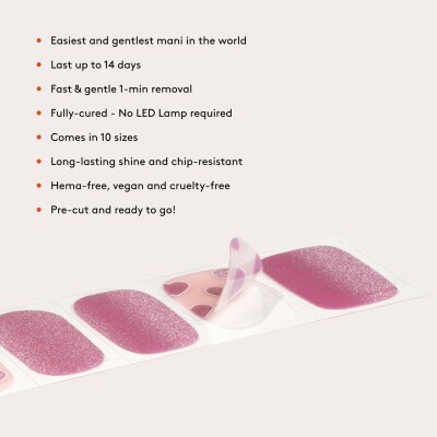 Quick, damage-free removal in just 1 minute. Apply Mylee Wrap Remover Oil* around the edges of the wrap. Gently lift one side with a Mylee Wooden Cuticle Stick and slowly slide it underneath, adding more oil as needed. Once removed, wipe your nails and wash your hands.