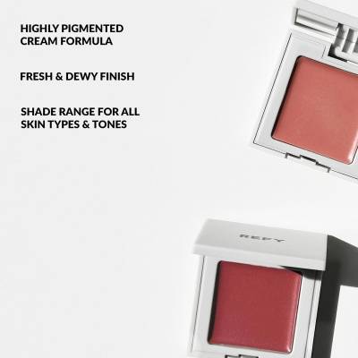 Use the dense side of the Duo Brush to apply Cream Blush to the cheeks. Blend with the larger end for a soft, seamless finish. Wear shades solo or layer together for added depth.