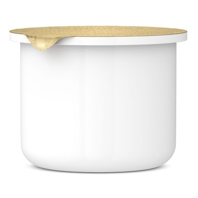 Push the tabs on the sides of the jar upward to remove the inner container from the glass jar. Then insert the refill, press it down into the jar, and remove the lid. Your product is now ready to use.