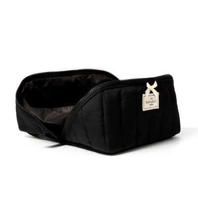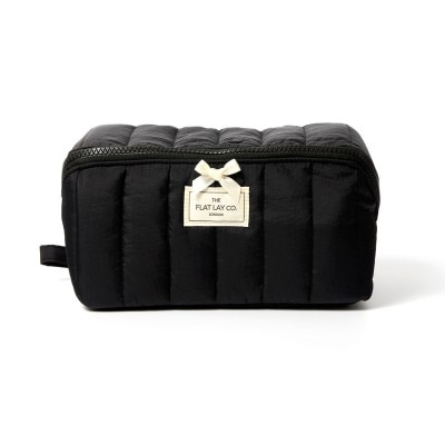 Unzip the bag and throw your makeup into the tray, placing any brushes in the handy elastic brush holders, and putting any small items like jewellery in the interior zipper pocket. Then just zip the bag back up to close. And that's it - from a easy to access tray to a structured bag in seconds!