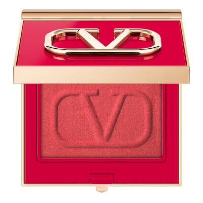 1 powder, multi look options. 3 ways to wear the Eye2cheek color powder using the integrated applicator. Look 1, the unique Valentino Eye2cheek look: wear from the eyelids to the cheekbones. Start applying the color on the eye crease using the tip of the applicator, then use small circular brush strokes to pull out to the temple and down to the cheekbone in a V motion. Look 2, the Valentino Blush look: wear on the cheeks as a blush. Use the integrated brush to buff color over the cheekbones for a fresh flush of color in large circular motion. Layer by reapplying to intensify the color impact. Look 3, the monochromatic eye look: wear as an eyeshadow. Use the tip of the applicator to precisely apply the color, then blend using the side of the brush for a perfectly seamless color result.