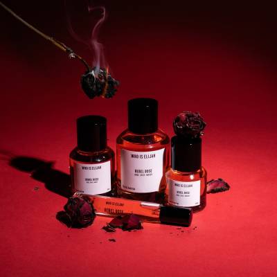 She doesn't flirt. She dares. Sweet on the surface, savage underneath. She will bat her lashes while burning the rulebook. REBEL ROSE doesn't ask for attention. She takes it. Red lips, smudged eyeliner, and a scent that sticks to skin and memory. You will want to chase her. You won't catch her. She's romance with a razor edge.