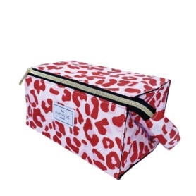 The Flat Lay Co. Open Flat Makeup Box Bag Pink Leopard