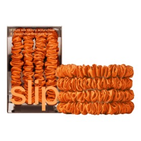Slip Silk Pillowcase Pure Silk Skinny Scrunchies Orange Set of 4